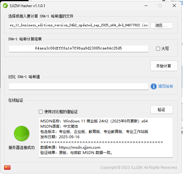 验证工具 下载:https://msdn.sjjzm.com/download/hasher
