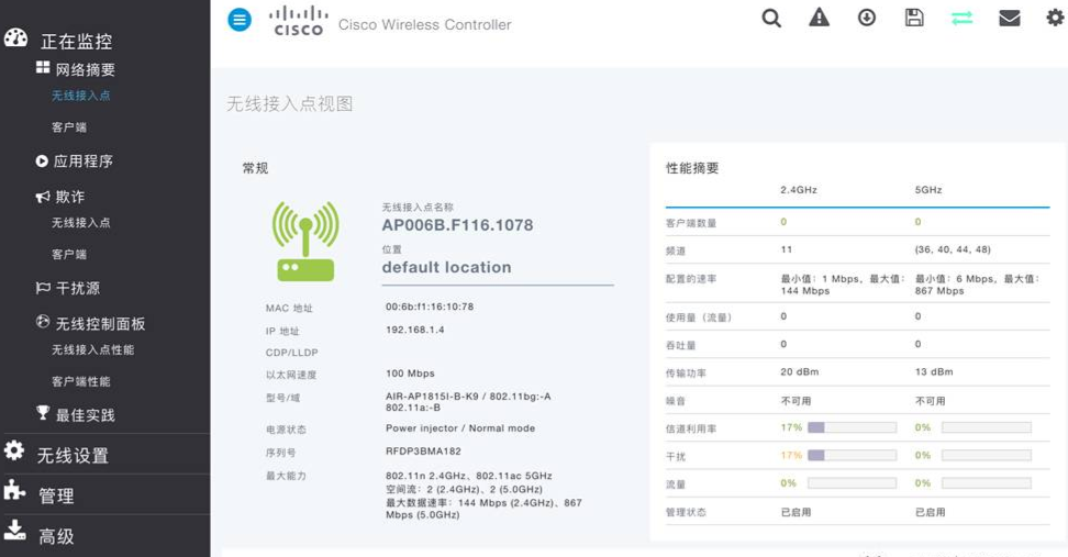 针对日益增加的企业网络无线终端,思科再次增强 Mobility Express 的功能,AP 2800 和 AP 3800 作为控制器时,最大支持管理 100 个 AP 和 2000 用户;(有些版本支持中文界面、支持射频自动优化)